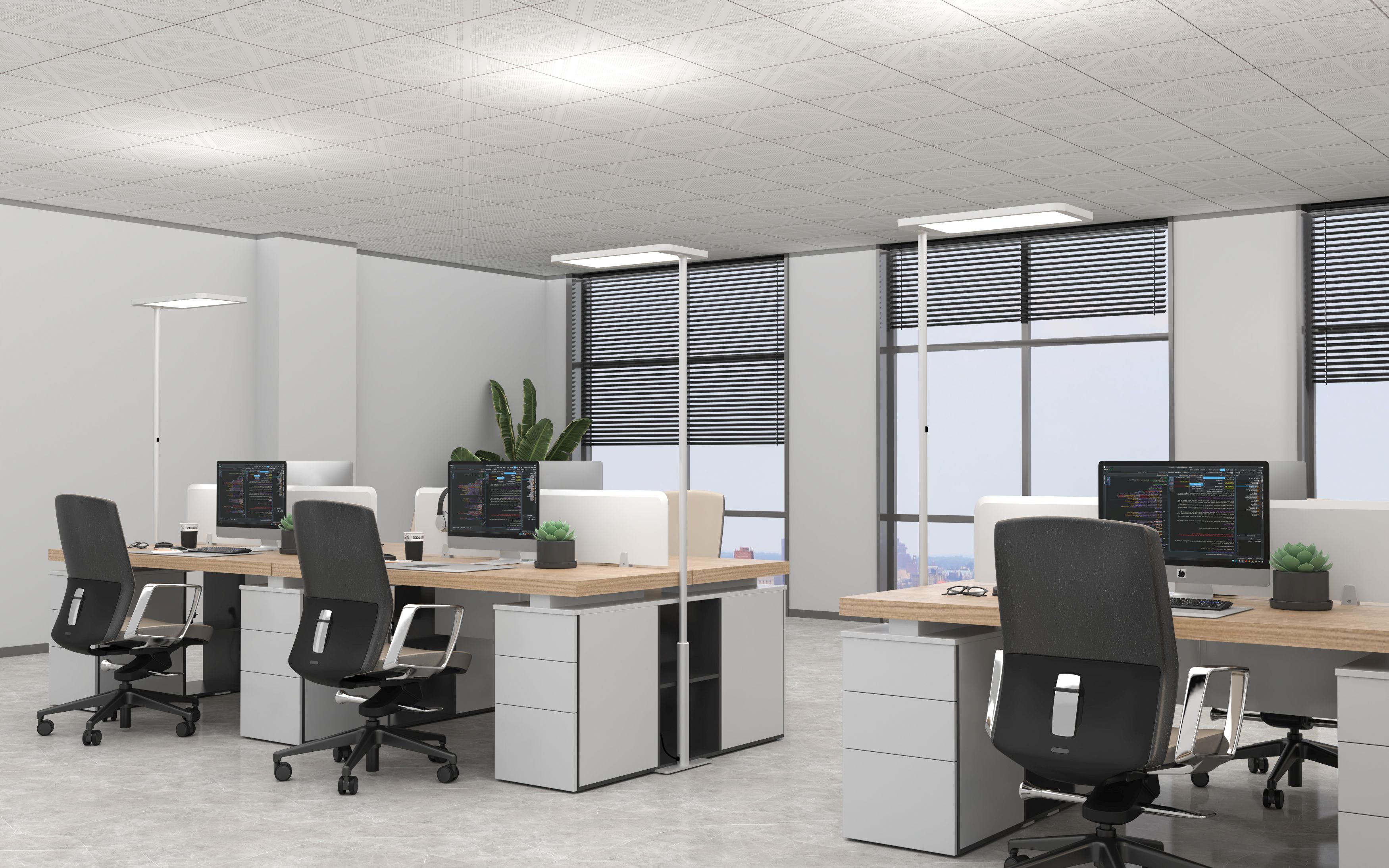 • 70 % de lumière indirecte et 30 % de lumière directe, réparties de manière asymétrique, pour un éclairage optimal du poste de travail